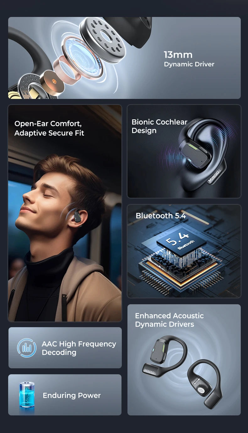 ✅Waterproof and Long Battery Life: MlNlSO Open earBluetooth headphones are designed to withstand all weather conditions with their waterproof rating, lettingyou explore with confidence.