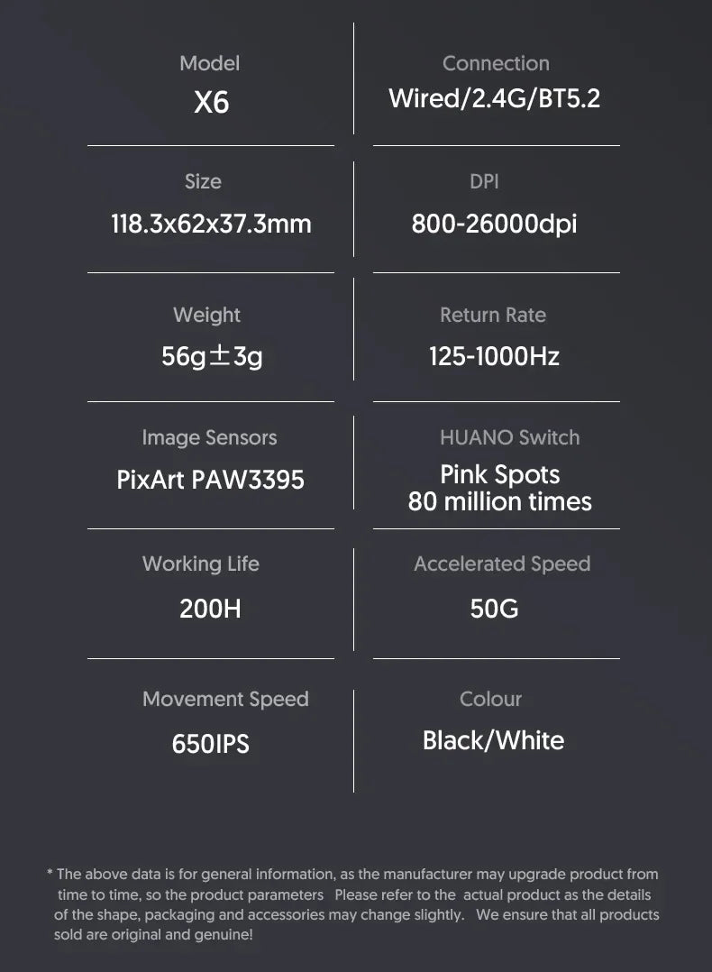 Sensor model: Pixart 3395 (26000 DPI|650 IPS|50G)