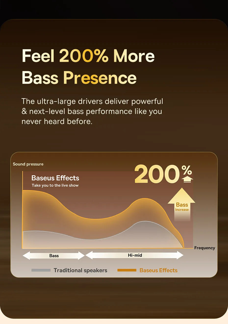 Enhanced bass drivers deliver powerful, punchy low-end with balanced mids and crisp highs for an immersive audio experience across all music genres.