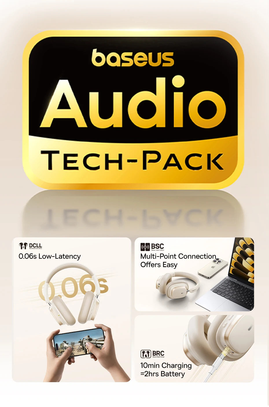 SEO Title: Baseus Bowie H1s Wireless Headphones 46dB ANC - Hi-Res Spatial Audio 120H