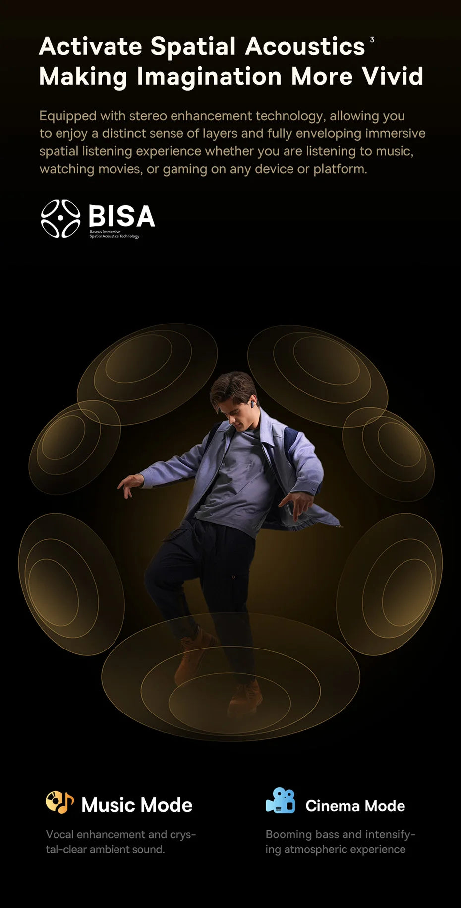 3. Baseus self-developed BISA (Baseus Immersive Spatial Acouustics): based on the principle of HRTF (Head-Re