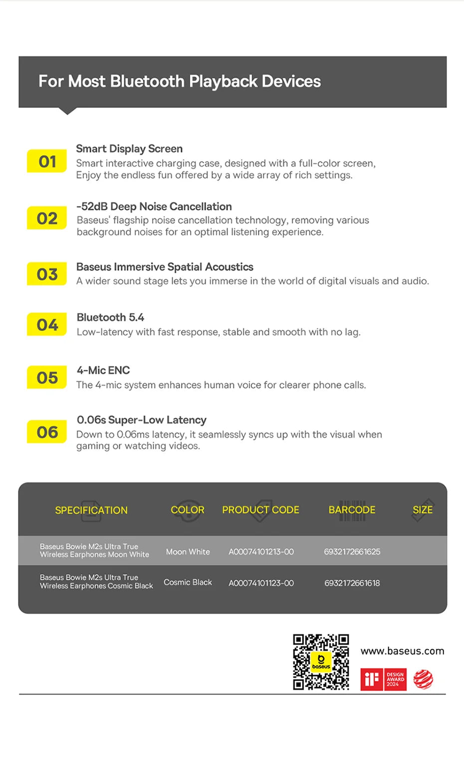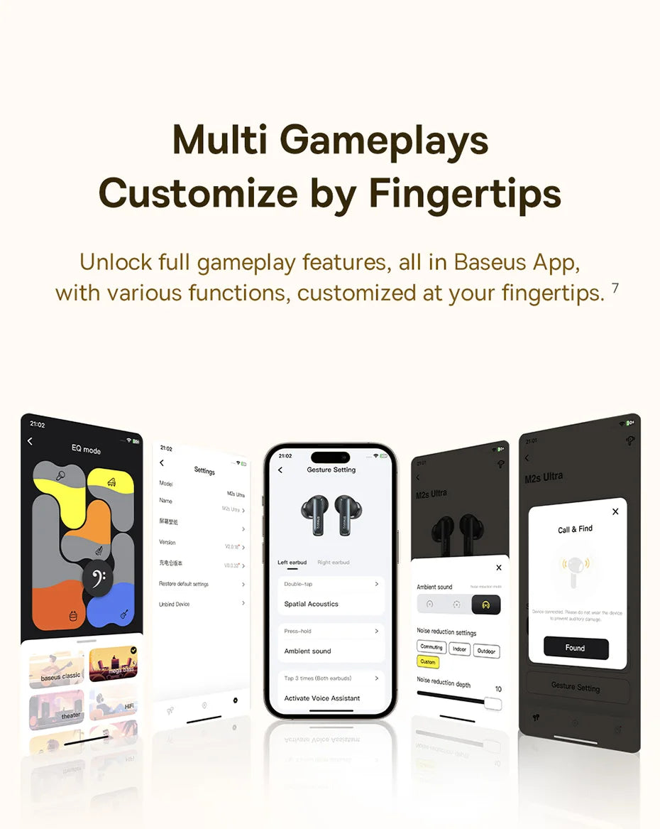 Through rigorous acoustic technology validation within Baseus,the M2s Ultra is bestowed with the Baseus Acoustic Gold Standard, incorporating Baseus intelligent audio technology,