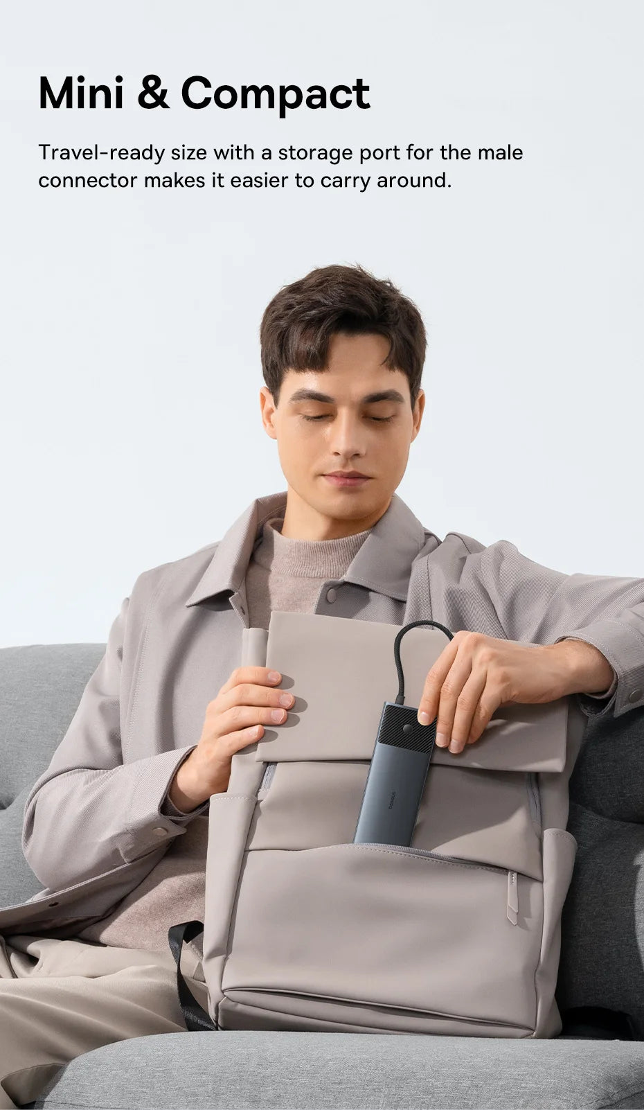 Travel-ready size with a storage port for the male connector makes it easier to carry around.