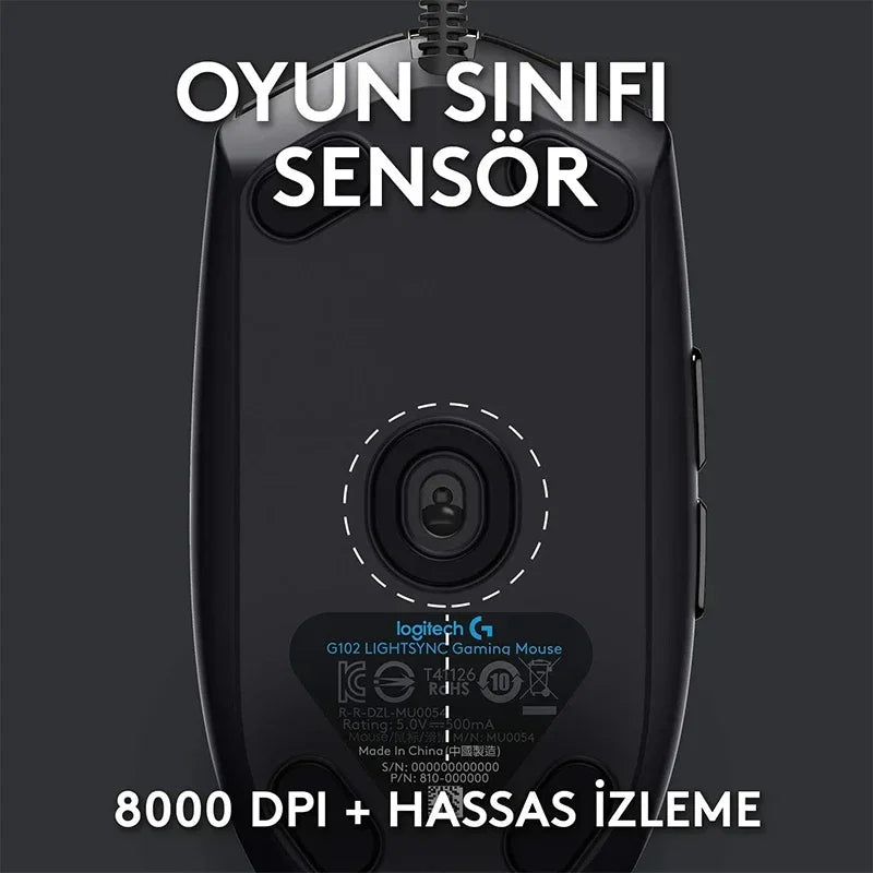 Logitech G102 Mouse USB Wired Gaming Mouse 8000 DPI Rainbow Optical Effect Screen For PC/Mac Computer and Laptop