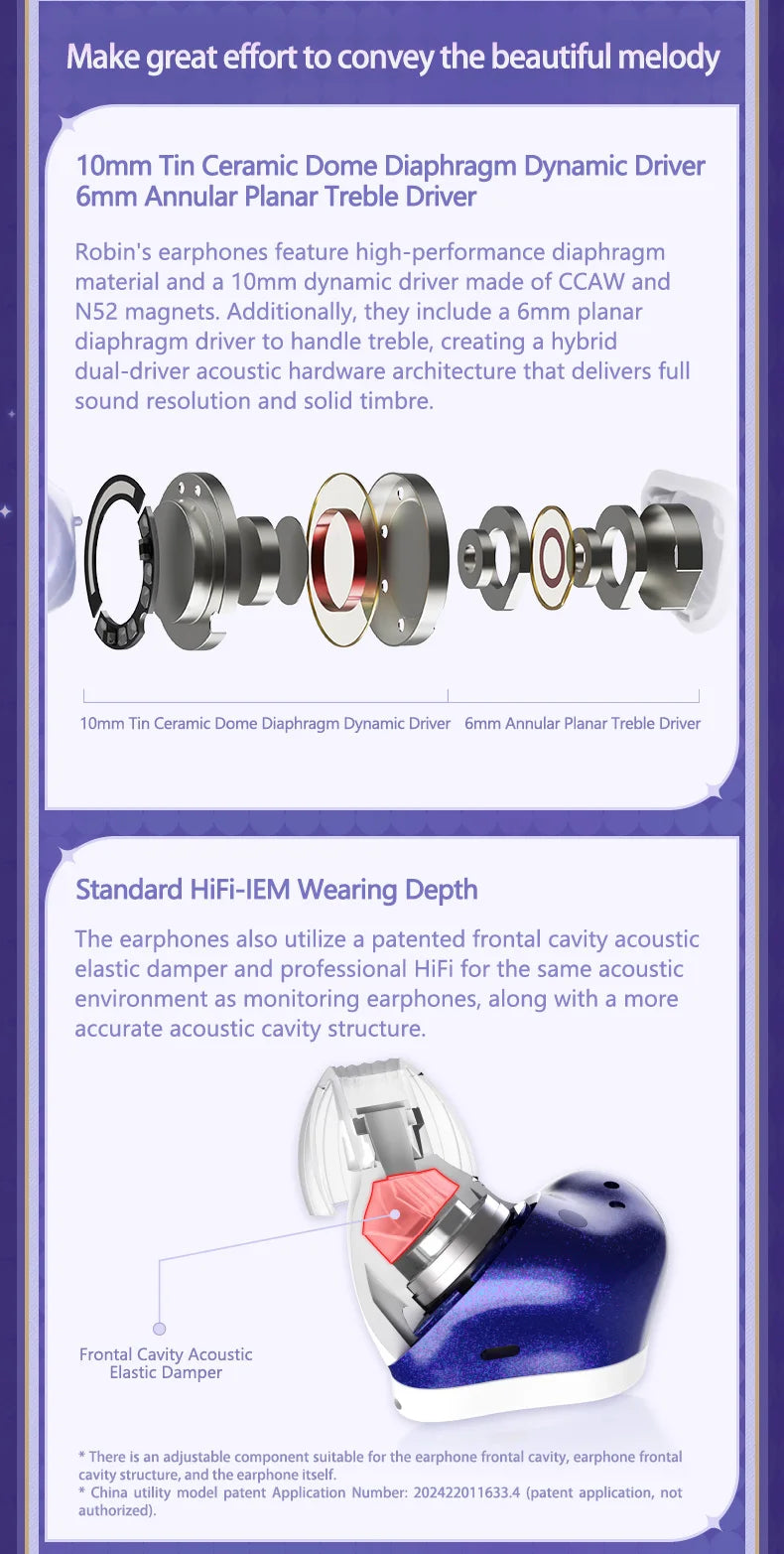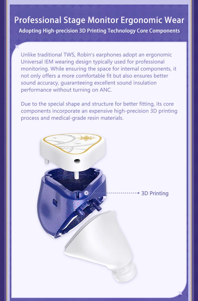 MOONDROP ROBIN Earphone Honkai Star Rail Robin's Earphones TWS Hybrid Dynamic Driver + Planar Driver ANC TWS Earphones
