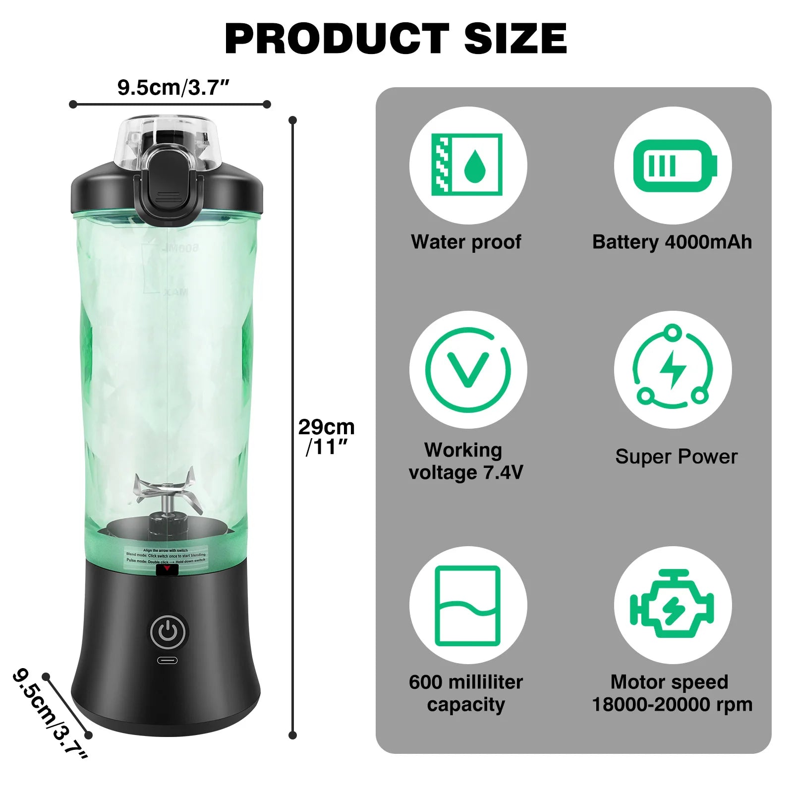 Blend fresh smoothies and juices anywhere with this versatile 2-in-1 portable blender. Featuring a 600ML capacity and USB rechargeable battery, it's perfect for healthy drinks on the go.