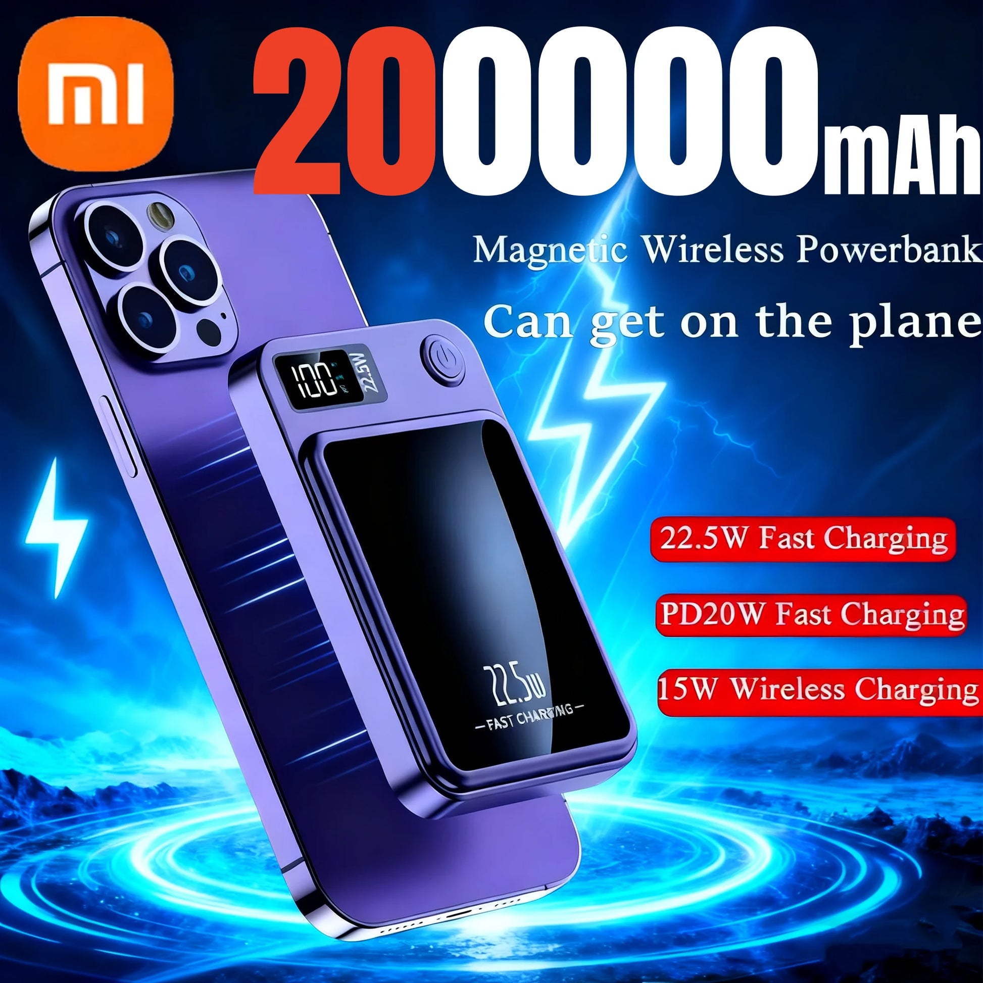 Stay powered up on the go with this high-capacity 200000mAh wireless magnetic power bank. Featuring 22.5W fast charging technology and MagSafe compatibility, it delivers quick and convenient charging for your iPhone, Samsung, and other devices.